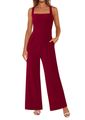 Macacões Femininos Elegantes De Gola Quadrada Da Prettygarden Com Pernas Largas E Longas