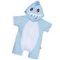 Macacão Infantil Curto Com Capuz Bordado Tubarão Azul Claro