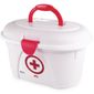Maleta Branca Com Alça Vermelha E Capacidade Para 4 Litros, Decorada Com Uma Cruz Vermelha No Centro, Conhecido Universalmente Como Símbolo De Primeiros Socorros. A Maleta É Composta Por Um Recipiente Ovalado De 4l Sem Divisórias, Uma Bandeja Interna Com Alça E Três Cavidades Para Armazenar Conteúdos Menos Volumosos E Uma Tampa Fixada Por Duas Dobradiças Em Cada Extremidade Que Permitem Um Movimento Basculante Perfeito. Para Maior Segurança Durante O Transporte, A Maleta Conta Com Uma Trava Frontal Firme Com Sistema De Pressão.