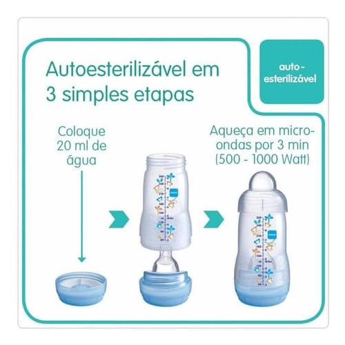 Mamadeira Easy Start 160ml - Mam A mamadeira Easy Start 160ml Da Mam, Foi Desenvolvida Com Ajuda De Especialistas Da Saúde E É Recomendada A Partir De 0 Meses. Pensando Em Conf E Máxima Qualidade, A Mam Desenvolveu E Patenteou Um Bico Simétrico De Silicone Ultra Macio, O skinsoft - Comprovadamente Aceito Por 94% Das Crianças* Inovador Sistema - A Válvula Na Base Da Mamadeira Impede A Formação De Bolhas De Ar E A Formação De Espuma No Líquido. Isso Cria Um Fluxo Suave De Beber E Impede Que A Criança Engula Ar. O Resultado É menos Confirmado Por 80% Das Mães Totalmente Desmontável facilitando A Limpeza, Auto Esterilizável Em 3 Minutos - Tecnologia Exclusiva Mam: Pode Ser Utilizada Mesma Fora De Casa, Acompanha bico De Fluxo Lento, Livre de Bpa E Bps, Compatível com Diferentes Tamanhos De Bicos Mam. Contém:01 Mamadeira Easy Start 160ml - Mam