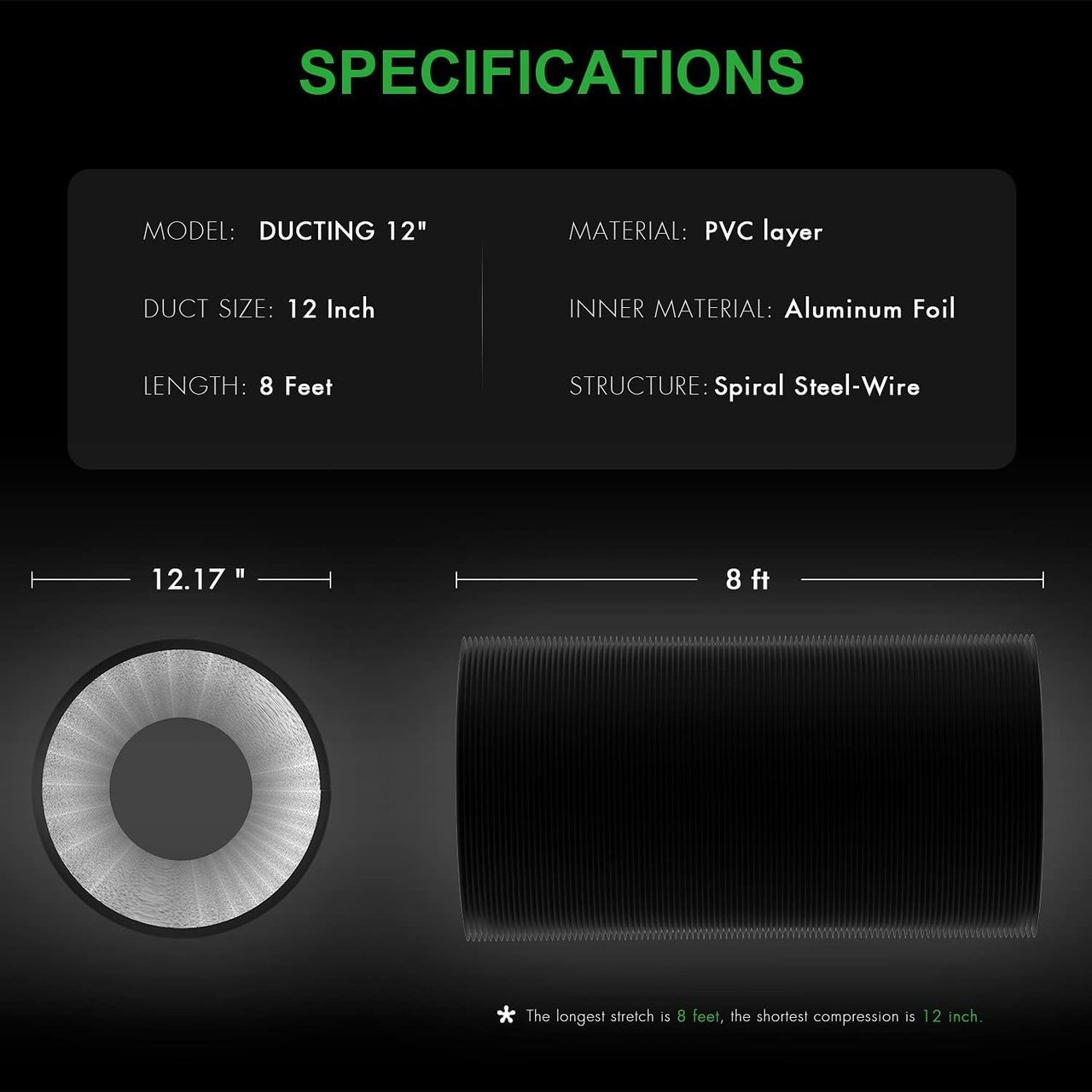 - Material Premium: Folha De Alumínio De Alta Qualidade, Resistente A Altas Temperaturas E Resistente À Corrosão, De Longa Duração. A Camada Espessa De Pvc Neste Duto Pode Evitar Vazamentos De Luz. Inclui Um Par De Grampos De Duto De Aço Inoxidável De 30,5 Cm.