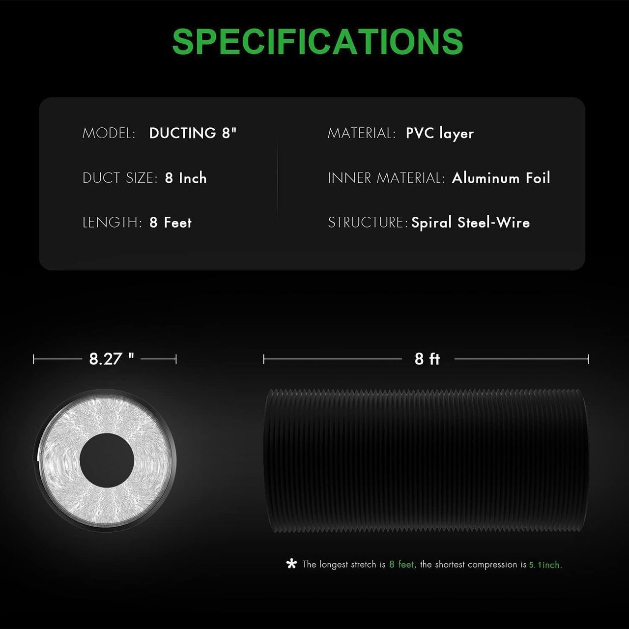- Material Premium: Folha De Alumínio De Alta Qualidade, Resistente A Altas Temperaturas E Resistente À Corrosão, De Longa Duração. A Camada Espessa De Pvc Neste Duto Pode Evitar Vazamentos De Luz. Inclui Um Par De Grampos De Duto De Aço Inoxidável De 20 Cm.