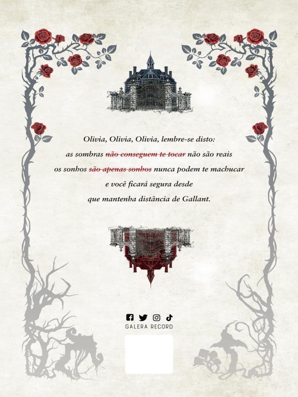 " Da Autora Best-seller De A Vida Invisível De Addie Larue, O Novo Livro De V. E. Schwab, Mansão Gallant, É Uma História Gótica E Envolvente Sobre Um Lugar Onde As Sombras Encontram A Luz E Onde A Morte Encontra A Vida. Leia Com As Luzes Acesas (ou Apagadas, Se Tiver Coragem). V.e. Schwab, Autora Best-seller Número 1 Do New York Times , Em Uma História Sinistra E Original Sobre O Lugar Onde O Mundo Se Encontra Com As Sombras, E Sobre A Jovem Que É Atraída Para Lá. Uma Mistura De O Jardim Secreto Com Crimson Peak, É A Leitura Perfeita Para Fãs De Holly Black E Neil Gaiman. Olivia Prior Sempre Sonhou Em Ter Uma Família Que Se Importasse Com Ela. Mas, Em Vez Disso, Ela Está Confinada Na Escola Merilance Para Garotas Independentes, Com As Suas Governantas Severas E Com As Outras Alunas Que A Excluem Por Ser Muda. Sua Única Fonte De Conforto É O Diário Deixado Pela Mãe Que Nunca Conheceu, Com O Qual Consegue Ter Lampejos De Uma Vida Desconhecida. Quando Recebe Uma Inesperada Carta De Um Tio, Arthur Prior, Convidando-a Para Morar Com Ele Na Mansão Gallant, Olivia Imediatamente Agarra A Oportunidade. Porém, Ao Chegar Em Gallant, Ao Invés De Uma Recepção Calorosa, A Garota É Recebida Com Espanto. Além Do Mais, Todos Parecem Viver Com Medo, E Ninguém Quer Explicar O Motivo Para Olivia. Decidida A Não Abrir Mão Da Família Recém-descoberta, A Jovem Terá Que Desvendar, E Enfrentar, Os Mistérios Que Envolvem Como Uma Névoa A Mansão Gallant. “um Livro Arrepiante... O Horror Gótico E Sensível De Shirley Jackson Se Encontra Com A Força E O Mundo Fantástico E Sombrio De Neil Gaiman.” - Publishers Weekly “vai Prender Os Leitores Com A História Arrebatadora, Os Personagens Bem Construídos E Uma Trama Repleta De Horror Fantástico.” - Kirkus Reviews "