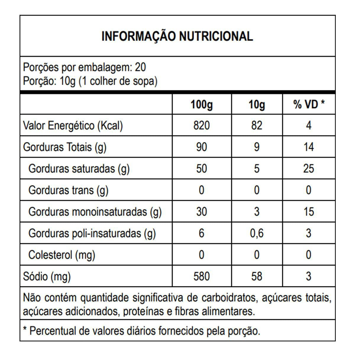 Não Contém Glúten. Não Contém Lactose. Não Contém Colesterol. Zero Gordura Trans.
