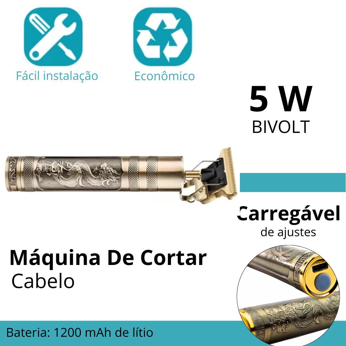 A Máquina De Cortar Cabelo E Barba Golden Dragon Oferece Cortes Precisos E Sem Irritações, Com Lâminas Avançadas, 6200rpm De Potência, E Sistema Exclusivo Nano Cut. Resistente A Água, Possui Bateria De Lítio De Longa Duração (até 6 Horas) E Design Moderno E Ergonômico. Ideal Para Uso Doméstico E Profissional.