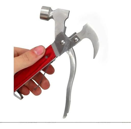 Martelo Multifuncional Com Ferramentas Para Camping - Vermelho