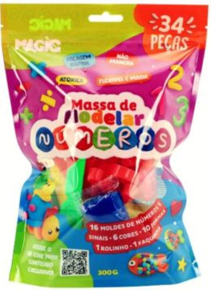 Massa Modelar 34 Pecas - Numeros, Sinais E Formas - 300g