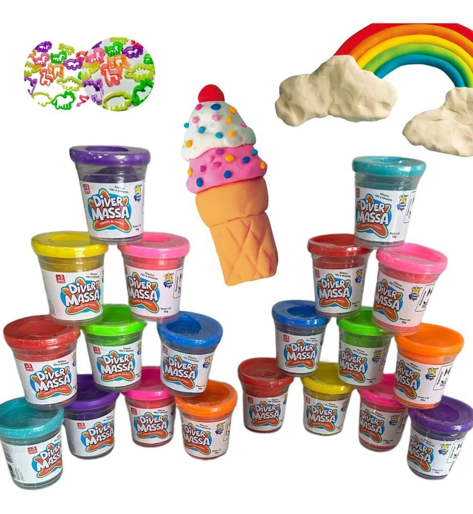 Massinha Modelar Infantil Sortida Kit 20 Potes + Forminhas