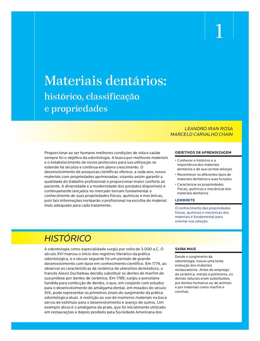 Materiais Dentários é mais um livro da Série Abeno - Odontologia Essencial, pertencente à Parte Clínica, a chegar ao mercado, reunindo, assim como os demais, todas as características da Série Abeno. Este volume apresenta de forma didática e sucinta os conhecimentos necessários para a aplicabilidade eficiente dos principais materiais dentários utilizados na prática da odontologia.