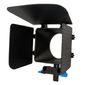 Parassol Mattebox para HDSLR para sistemas de 15mm, com distância entre barras de 60mm. Plástico de alta resistência e alumínio anodizado preto. Excelente qualidade do material.