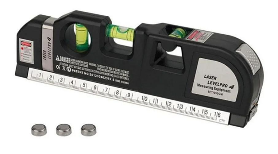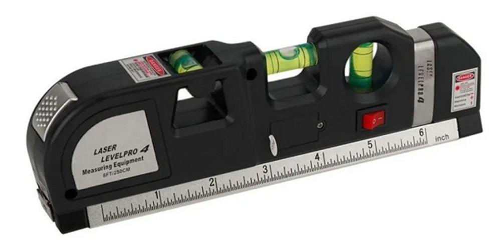 Nível Medidor Pro Laser Infravermelho Horizontal Vertical Cruz Prumo Trena 250 Cm Régua 16 Cm