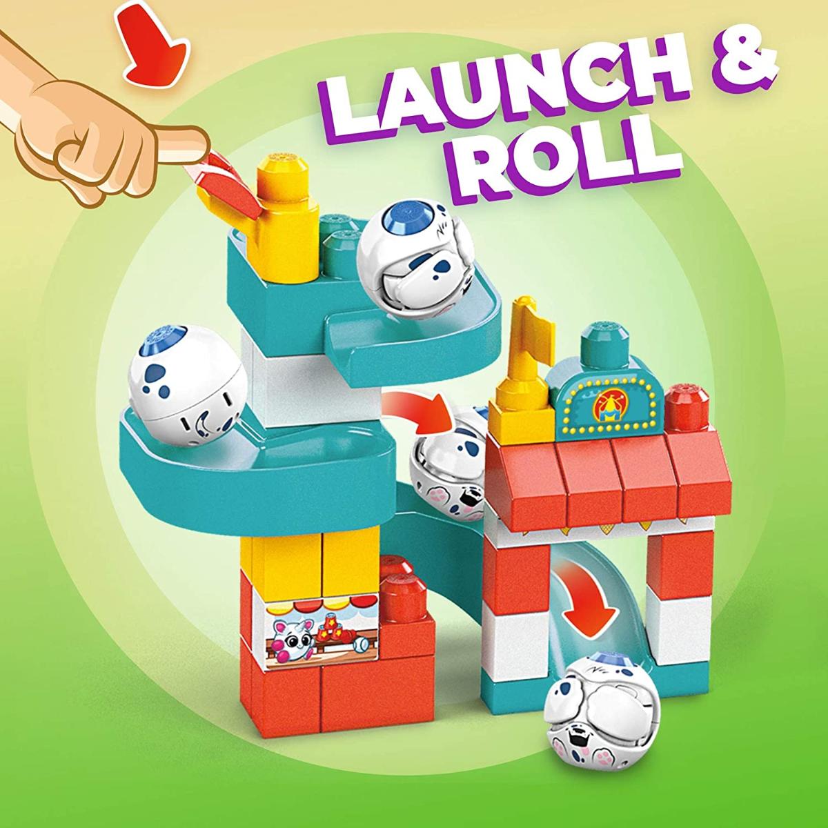 Lance em uma aventura de 3 andares do Parque de Diversões com essa perseguição de cachorrinho e gatinho! Seu pequeno pode rolar em brincadeira com um parque de diversões de 3 andares 1 cachorrinho e 1 gatinho gato Peek A Blocks! Eles podem construir o parque de diversões e colocar os animais Peek A Blocks em um grande bloco de construção para uma surpresa peek-a-boo Então seu bebê pode empilhar o Peek A Blocks no lançador um após o outro e pressionar para baixo na alavanca para enviar o cão e o gato perseguindo uns aos outros pelos slides Ideal para Os Primeiros Construtores idades 1+