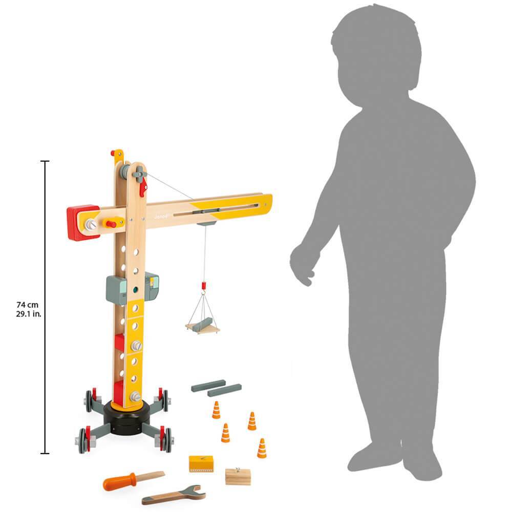 O Mega Guindaste De Montar Da Janod É Uma Verdadeira Obra-prima Para Pequenos Construtores! Com 74 Cm De Altura, Esse Guindaste Móvel Vem Com 13 Peças Para Montagem, Iniciando A Criança No Mundo Dos Jogos De Construção. Ele Possui 4 Rodas Para Estabilidade E Um Sistema De Bloqueio Para Garantir Segurança. As 2 Manivelas Controlam O Elevador, Permitindo Levantar E Transportar Um Cesto Com Equipamentos Pesados. Feito De Madeira E Metal, Com Tons De Laranja, Vermelho E Madeira, É Equipado Com 10 Acessórios E 2 Ferramentas. Com 71 × 25 × 74 Cm, É Perfeito Para Crianças A Partir De 3 Anos!