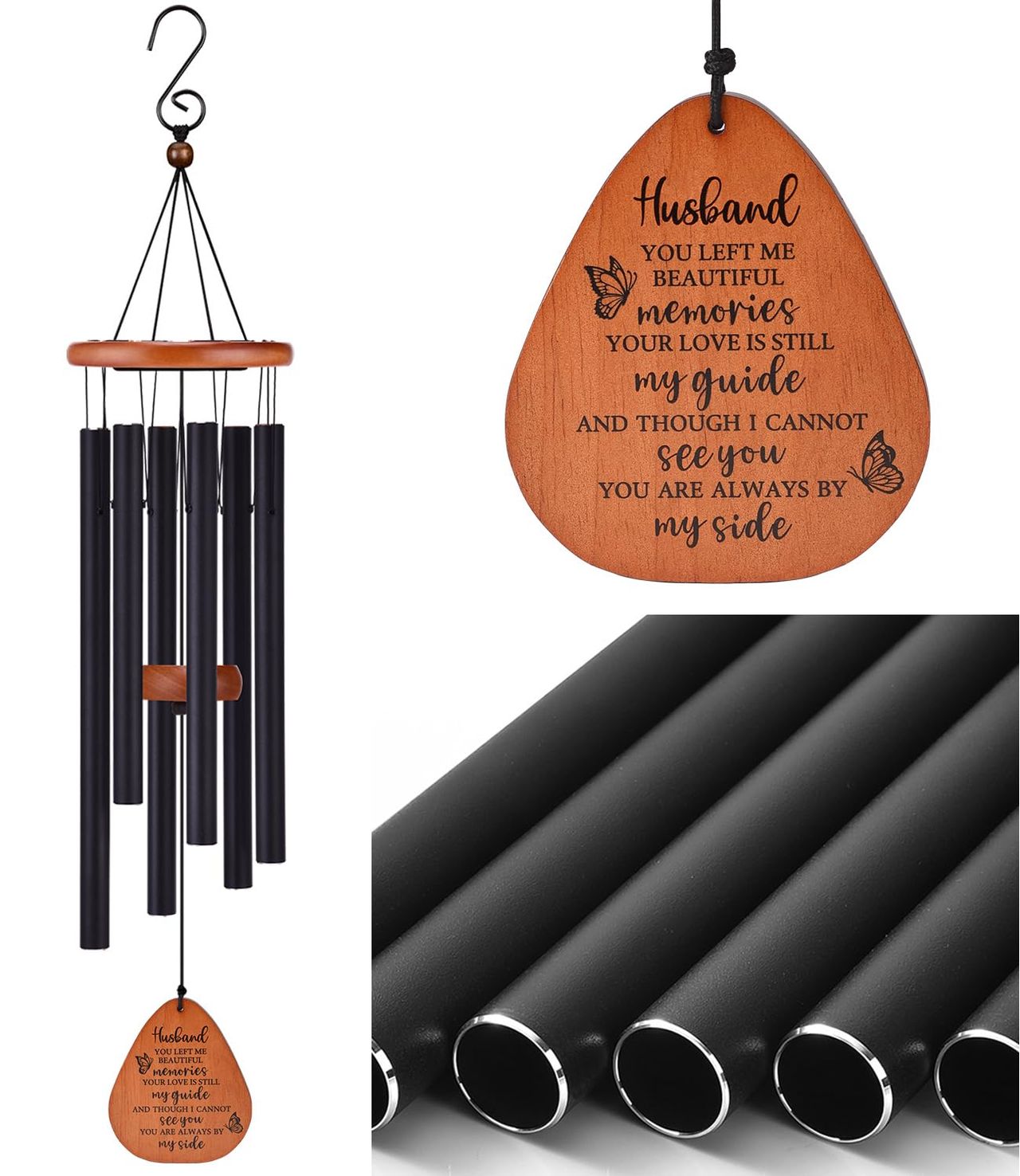 - Peça Artesanal Premium: Cada Carrilhão É Ajustado À Mão Para Um Tom Agradável E Calmante. Estes Sinos De Vento Para O Exterior Podem Ser Pendurados Em Uma Varanda, Em Um Jardim, Em Decoração De Túmulos Ou Em Outro Local Onde Possam Adicionar Música Ao Ar. São Presentes Doces E Atenciosos De Luto E Simpatia Pela Perda Do Marido.
