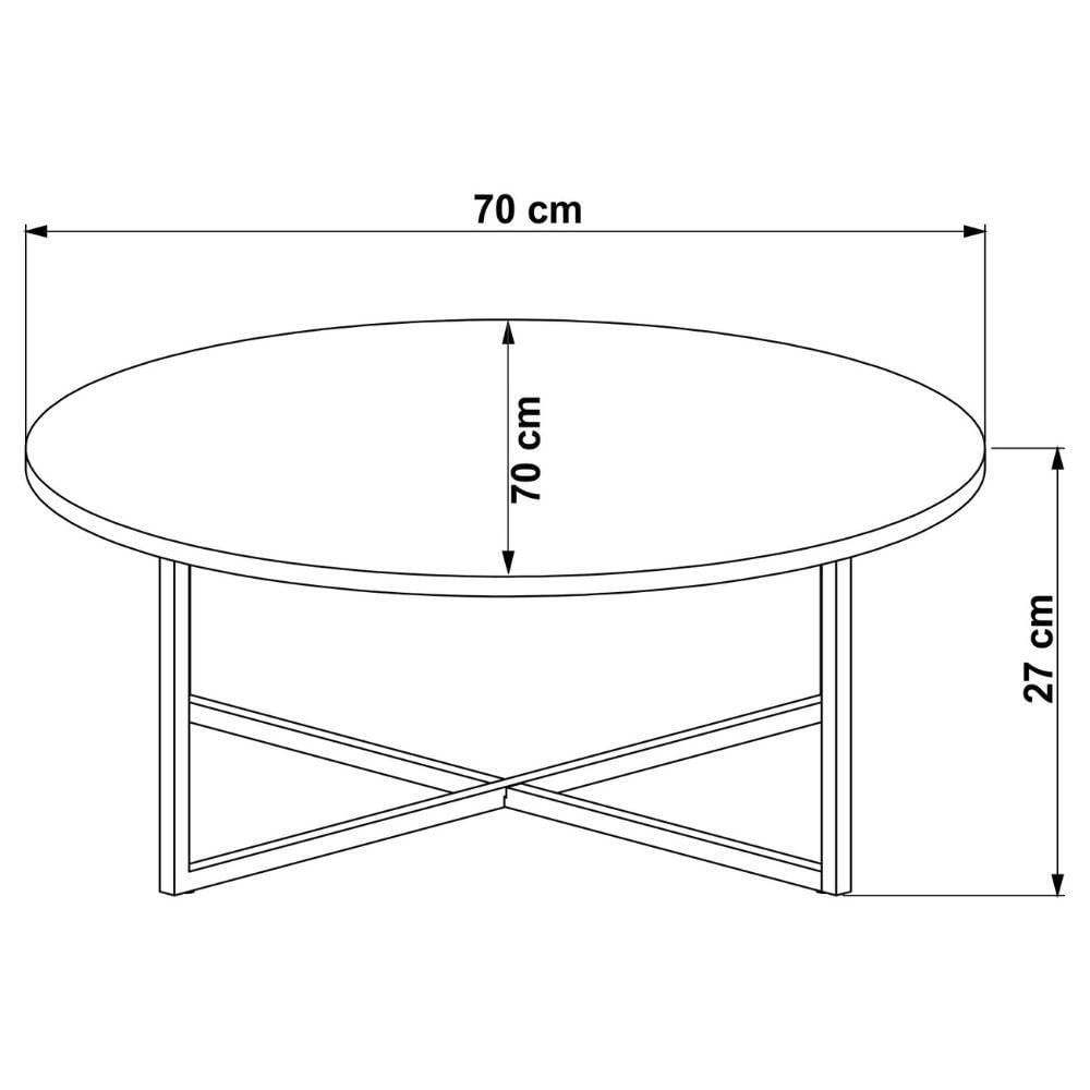Mesa De Centro Redonda 70cm - Hanovera Mesa De Centro Redonda 70cm Na Tonalidade Hanover É Um Item De Mobiliário Essencial Que Alia A Tendência Do Design Industrial A Uma Funcionalidade Superior. Seu Formato Circular E Diâmetro De 70cm A Posicionam Como Um Elemento Centralizador Na Sala De Estar, Capaz De Acomodar Objetos Decorativos, Bebidas Ou Controles Remotos Com Elegância.o Plano Superior, Na Cor Hanover, É Confeccionada Em Mdp 15mm Com Acabamento Bp. Este Material É Reconhecido Por Sua Superfície Melamínica, Que Proporciona Alta Durabilidade E Resistência Contra Riscos E Abrasão, Além De Conferir Uma Estética De Madeira Mais Sóbria E Contemporânea Ao Ambiente.sua Base De Sustentação É Composta Por Uma Estrutura Metálica De Aço Maciço Com Acabamento Em Pintura Epóxi Fosco. O Perfil Metálico, Frequentemente Na Cor Preta, Forma Uma Estrutura Sólida Em X Que Não Só Garante A Firmeza Do Móvel, Mas Também Injeta O Visual Urbano E Robusto Tão Valorizado No Design De Interiores Moderno.a Mesa 70cm Hanover É A União Perfeita Entre Estabilidade Estrutural E Apelo Visual.garanta Já Sua Mesa De Centro Em Nosso Site!especificações:peso: 13kgaltura: 27cmlargura: 70cmprofundidade: 70cmnecessita De Montagem: Simgarantia: 90 Dias Contra Defeitos De Fabricação.limpeza E Manutenção:limpeza Diária Com Flanela Seca Para Remoção Do Pó. Nunca Utilizar Materiais Abrasivos Como Esponja Sintética, Esponja De Aço, Saponáceos. Secar Rapidamente Qualquer Líquido. Cadeiras De Cromo Jamais Devem Ser Deixadas Em Áreas Externas E Não São Recomendáveis Para Ambientes Com Maresia. Evitar Batidas Que Comprometam A Proteção Conta Oxidação.