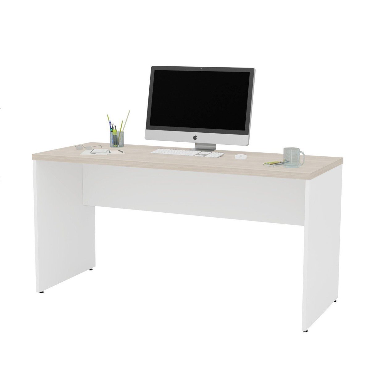 Mesa De Escritório Escrivaninha 160x60cm Tampo 3cm Carvalho / Branco.