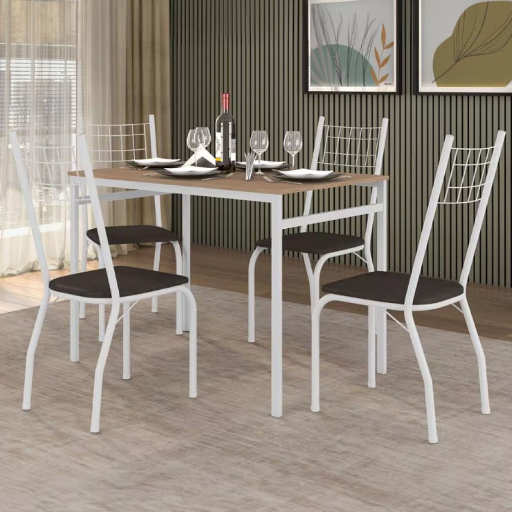 Conjunto De Mesa Retangular Sintra Fabone, Um Produto Que Une Beleza, Qualidade E Praticidade. Pensado E Desenvolvido Especialmente Para Você! Design Elegante A Mesa De Jantar Com 1,10m É Acompanhada Por 4 Cadeiras, Que Suportam Até 90kg Cada, Com Assento Estofado Em Espuma Com Densidade D-14 E Acabamento Em Courvin, Permitindo Mais Conforto Para Você E Seus Convidados. Seu Tampo Em Mdp Apresenta Espessura De 15 Mm, Facilitando A Hora Da Limpeza. Sua Estrutura Em Aço Carbono Confere Durabilidade E Estilo À Peça. Conforto E Beleza Ao Ambiente A Beleza Clássica Do Conjunto Sintra Se Encaixa Perfeitamente Em Diversos Estilos De Decoração, Complementando Seu Lar Com Charme E Sofisticação.