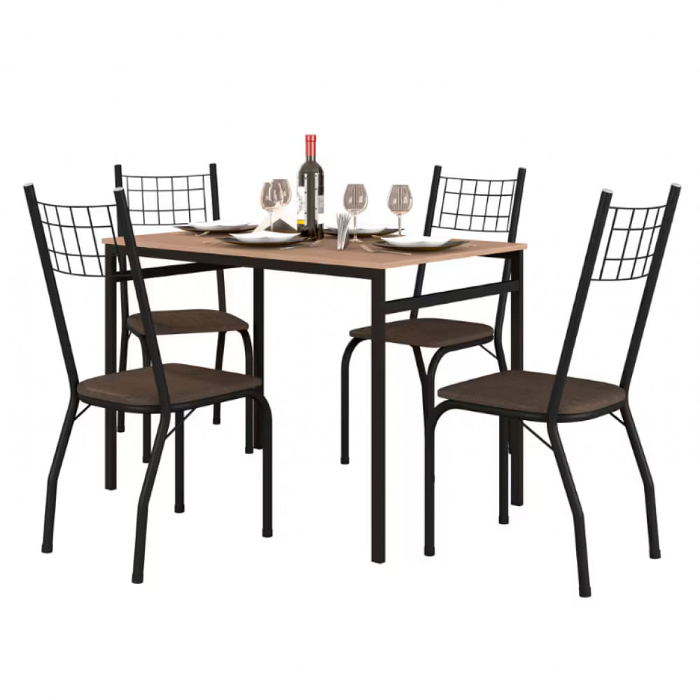 Mesa De Jantar Retangular Fabone Sintra Com 4 Cadeiras Estofadas