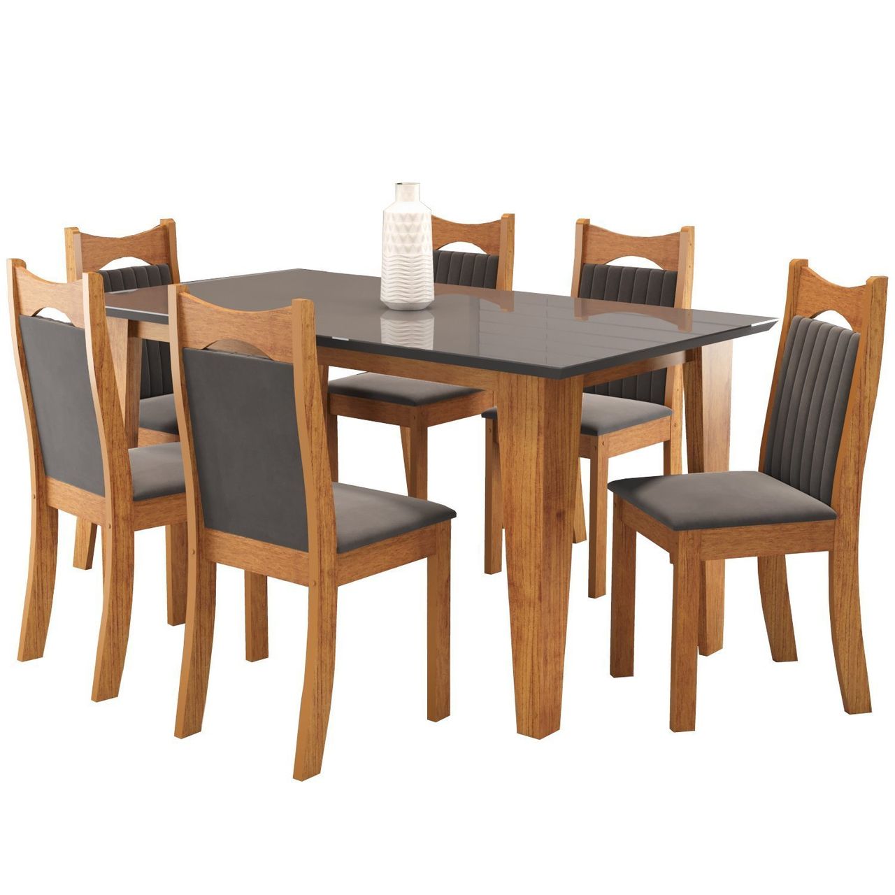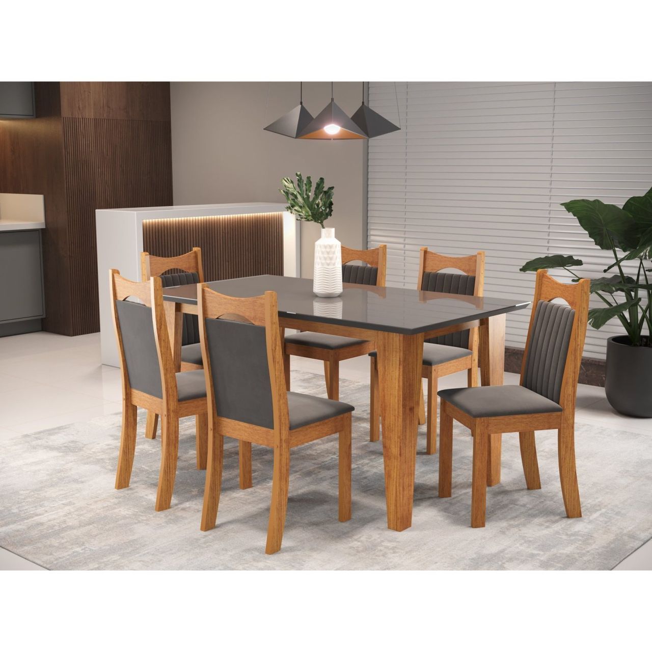 Mesa De Jantar Retangular Navidad Com 6 Cadeiras Dalas Mel/grafite.