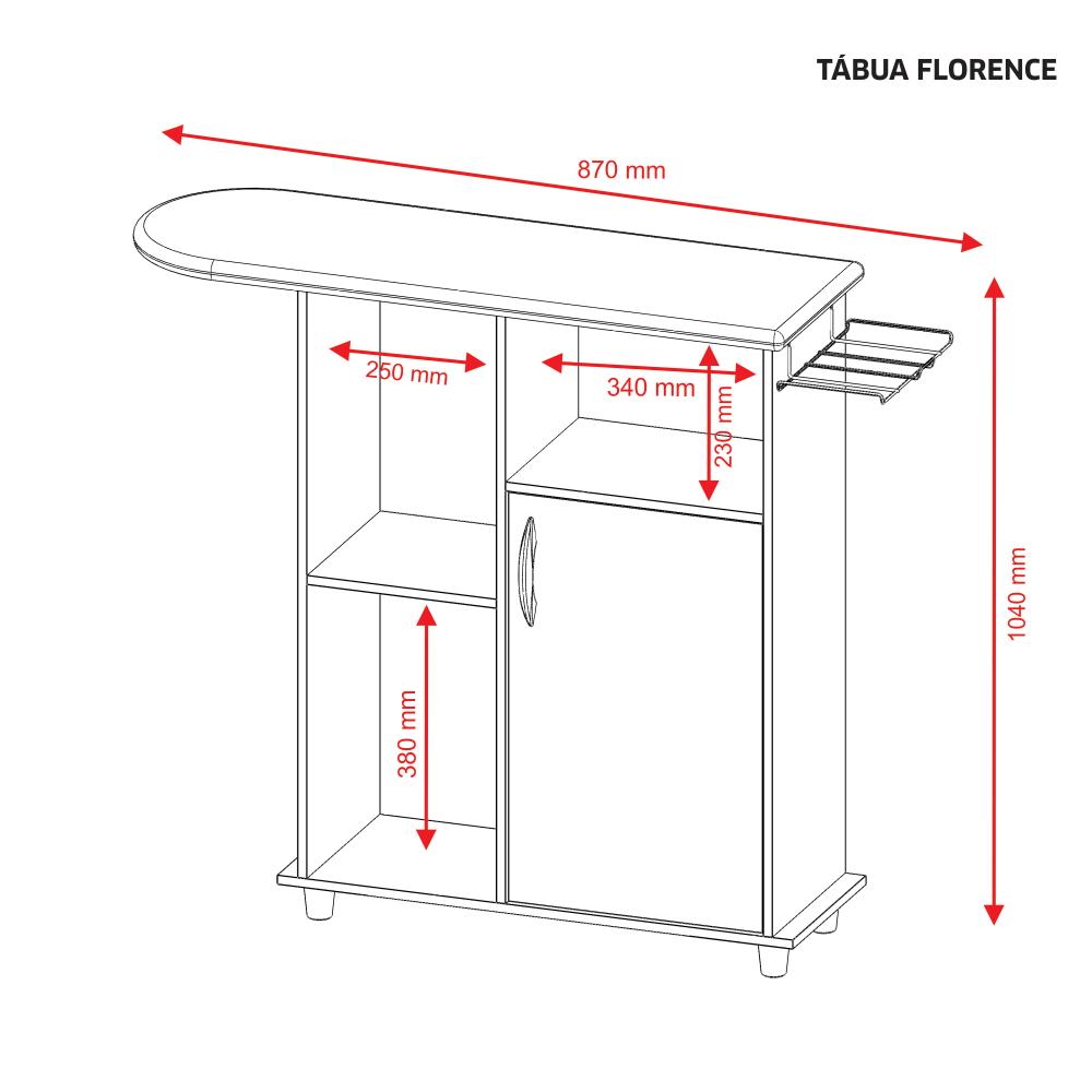 A Mesa De Passar Florence É Compacta E Ideal Para Economizar Espaço Na Sua Lavanderia Ou Área De Serviço. Com Cabideiro E Suporte Para Ferro Para Facilitar A Tarefa. Feita Em Mdp, A Florence Vai Te Ajudar No Dia A Dia E Deixar Seu Cantinho Mais Aconchegante.descrição:altura: 87cmlargura: 1,04mprofundidade: 29cmpeso Do Produto (kg): 12,1peso Suportado Distribuído (kg): 13material Da Estrutura: Mdp 12mmcaracterísticas:acabamento: Branco (brilho), Nogal (fosco)pintura: U.v (ultravioleta)quantidade Porta (s): 1observações:necessita Montagem: Simacompanha Manual De Montagem: Simquantidade De Volume (s): 1garantia: 90 Dias Contra Defeito De Fabricaçãoembalagem (lxpxa):volume 1: 1,05m X 37cm X 10cmpeso (kg): 12,7recomendação:-para Maior Durabilidade, Recomendamos A Limpeza Com Pano Limpo E Levemente Umedecido. Em Seguida, Passar Um Pano Limpo E Seco.- Não Usar Produtos À Base De Aminoácidos.montagem E Entrega:- Os Nossos Móveis São Entregues Desmontados E Todos Acompanham Manual Com Instruções De Montagem.- Sempre Verifique O Nível De Complexidade De Montagem E Em Caso De Dúvida Não Monte Sozinho (a), Contrate Um Profissional.- A Entrega Pela Transportadora Não Inclui A Subida De Escada Ou O Içamento Dos Produtos.sobre Imagens:- As Imagens Ambientadas São Meramente Ilustrativas E Podem Apresentar Itens Que Não Compõe O Produto.- Objetos Decorativos Da Imagem Não Acompanham O Produto.- As Cores Do Produto Podem Sofrer Variação De Acordo Com O Seu Monitor A Iluminação Do Seu Ambiente Ou Sua Percepção Visual
