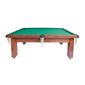 Mesa De Sinuca Com Medidas 1,75x1,07m Confeccionada Em Madeira Maciça Cedrinho Em Tom De Mogno, Campo De Jogo Em Pedra Ardósia Polida E Tapeçada Com Tecido Acrílico Thais Na Cor Verde, Modelo Com 04 Pés, Caçapas Em Redinhas, pés Niveladores Para Melhor Nivelamento Da Mesa e Sem Acessórios Para Jogo.