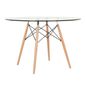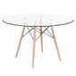 Cadeiras: Material Do Assento: Couro Pu - Material Da Base: Madeira E Aço - Altura Do Assento: 45 Cm - Largura Do Assento: 44 Cm - Profundidade Do Assento: 38 Cm - Distância Entre Os Pés: 40 Cm - Peso Suportado: 130 Kg. Mesa: Material Do Tampo: Vidro Incolor Temperado 8 Mm - Material Da Base: Madeira E Aço - Altura: 75 Cm - Diâmetro: 120 Cm - Garantia: 3 Meses.