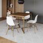 Mesa Jantar Industrial Quadrada 90cm Amêndoa Base V Dourada Com 4 Cadeiras Eames Eiffel Madeira Bran - Cor: Amendoaa Mesa De Jantar É Um Dos Poucos Móveis Que Efetivamente Reúne A Família Para Saborear Um Bom Prato Ao Lado Das Pessoas Que Mais Ama. E Para Garantir Que O Seu Ambiente Fique Impecável, Conte Com A Mesa De Jantar Industrial. As Laterais Vazadas, Sua Forma Reta E Sua Base Em V Conferem Sofisticação E Ótimo Aproveitamento No Cômodo.tipo: Mesa Industrial Eamesmodelo: Base Vcor Tampo: Amêndoa Cor Base: Dourado Cadeira:cor: Branco Base: Madeira Medidas Mesa:altura: 78cmlargura: 90cmcomprimento: 90cmmedidas Cadeira:altura: 85cmlargura: 47cmcomprimento: 50cm Atençãoimagens Meramente Ilustrativas Realizado Edição, Podendo Haver Uma Pequena Variação De Cor Dependendo De Cada Tela Ou Monitor. Mesa Jantar Industrial Quadrada 90cm Amãndoa Base V Dourada Com 4 Cadeiras Eames Eiffel Madeira Bran