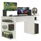 Para deixar sua gameplay ainda melhor, invista em uma mesa gamer que proporciona muito conforto, espaço de sobra e um design moderno. A mesa tem lugar para organizar tudo, não importa se você joga no PC ou no videogame. O tampo é reforçado e tem espaço para teclado, monitor, caixas de som e o que mais você preferir. Na parte inferior são várias prateleiras, perfeitas para CPU, jogos, controles e o console. Para completar, o móvel é versátil e pode ser utilizado como escrivaninha ou estação de trabalho home office. O acabamento branco é feito em pintura poliéster ecológica com 7 camadas de proteção.