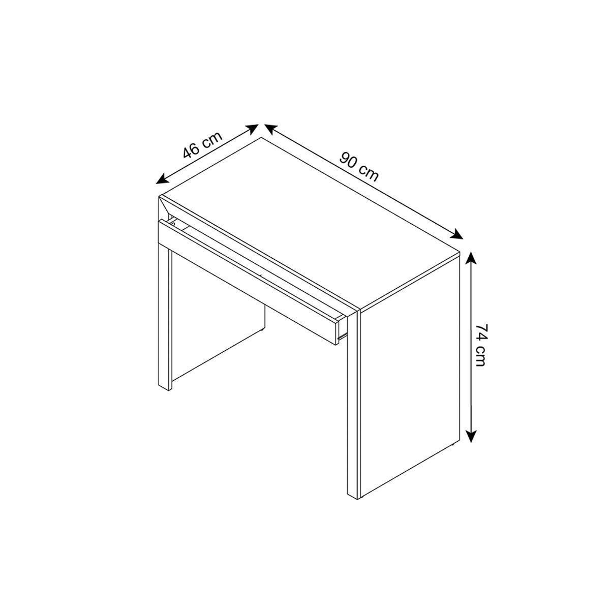 Mesa p/ Computador/Escrivaninha Tecno Mobili ME-4107 c/ 1 Gaveta - Branco Marca: Tecno MobiliDimensões(Cm): Comprimento(Profundidade): 46,50 x Largura: 90,00 x Altura: 74,50 CARACTERÍSTICAS DE MÓVEIS Tipo de Estrutura do Móvel - MDP/BP Tipo de Acabamento da Pintura - Semi Brilho Quantidade de Gavetas - 1 Gaveta Diferenciais da Gaveta - Corrediças Metálicas Garantia - 3 Meses Não nos responsabilizamos pela montagem/instalação dos produtos. Todas as informações divulgadas são de responsabilidade exclusiva do fabricante/fornecedor. Imagens Meramente Ilustrativas. Verifique com os fabricantes do produto e de seus componentes eventuais limitações à utilização de todos os recursos e funcionalidades.