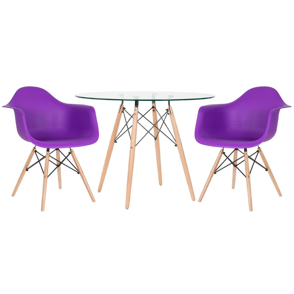 Mesa Redonda Eames Com Tampo De Vidro 100 Cm + 2 Cadeiras Eiffel Daw Roxo