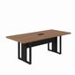 Mesa Reunião 6 Lugares Com 1 Caixa De Tomadas Pé Quadro 200x90cm Marrom/preto.