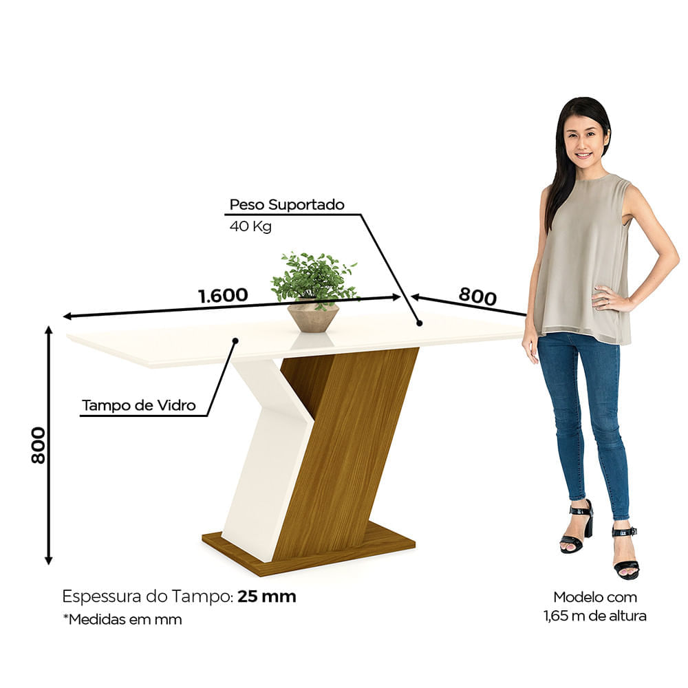 Nada mais gostoso do que um bom papo, uma boa comida, com ótimas companhias e uma decoração maravilhosa envolvendo tudo isso. Você pode aproveitar tudo isso através do design funcional e moderno da mesa de Jantar Juanita que é composta por tampo em MDF inteiro de 25mm acabamento em pintura UV com pintura nas duas faces, garantindo maior qualidade e durabilidade para o móvel. Elaborada com 800 mm de altura, 1.600 mm de largura e 800 mm de profundidade a mesa Juanita é de fácil montagem e ainda garante um novo visual para sua casa. Características : Estilo: Moderno Linha: Juanita Ambiente Principal: Sala de Jantar Ficha Técnica: Escala de Brilho do Tampo: Brilhante Escala de Brilho da Base: Fosco Cor Predominante: Branco Acabamento da Base: Pintura UV Texturizada Acabamento do Tampo: Pintura UV Estilo: Moderno Suporta até (Kg): 40 Kg Material Principal: MDP Material do Tampo: MDF Material da Base: MDP Tampo com Vidro: Sim Vidro Temperado: Não Tamanho do Vidro (L x C x E): 80 cm x 160 cm x 4 mm Formato do Tampo: Retangular Mesa Extensível: Não Ideal para quantas cadeiras: Mesa ideal para 04 ou 06 cadeiras. Necessita Montagem: Sim Sistema de Montagem: Parafusos e Cavilhas Complexidade de Montagem: Média: pode ser montado por mais de uma pessoa e/ou necessite de maior conhecimento de montagem. Não dispomos de montadores. Mas todos os nossos produtos acompanham um manual para montagem e são bastante intuitivos. Recomendações de Uso, Manutenções e Limpeza: Para limpeza de seu móvel, use uma flanela limpa e seca. Não utilize produtos químicos que possam danificar o produto. Atenção: As cores das imagens podem sofrer alterações devido a luminosidade, configurações do monitor e até mesmo a percepção do usuário. Itens Inclusos: 1 Mesa de Jantar com Tampo em MDF 160cm Juanita e Instrução de Montagem Dimensões do Tampo: Altura: 2,9 cm (2,5cm de MDF + 0,4cm de Vidro) Largura: 80 cm Profundidade: 160 cm Dimensões da Mesa Completa: Altura: 80 cm Largura: 160 cm Profundidade: 80 cm Peso: 47 kg Origem: Nacional Marca: Casa 812 Garantia do Fornecedor: 3 meses.