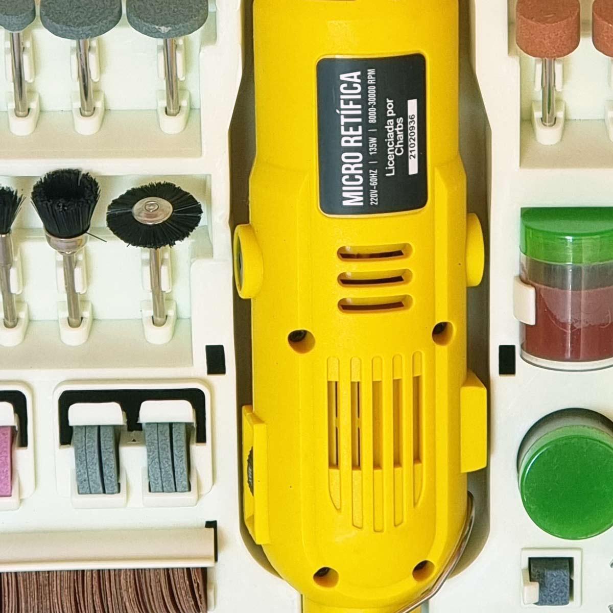 Mini Retífica Charbs É A Ferramenta Ideal Para Trabalhos De Desbaste, Remoção, Limpeza, Polimento, Gravação, Lixamento E Furação De Diferentes Tipos De Materiais E Superfícies. Tenha Em Mãos Um Kit Que Reúne Tudo O Que Você Precisa Em Uma Exclusiva Maleta Portátil Para Você Levar Onde For