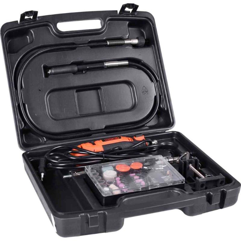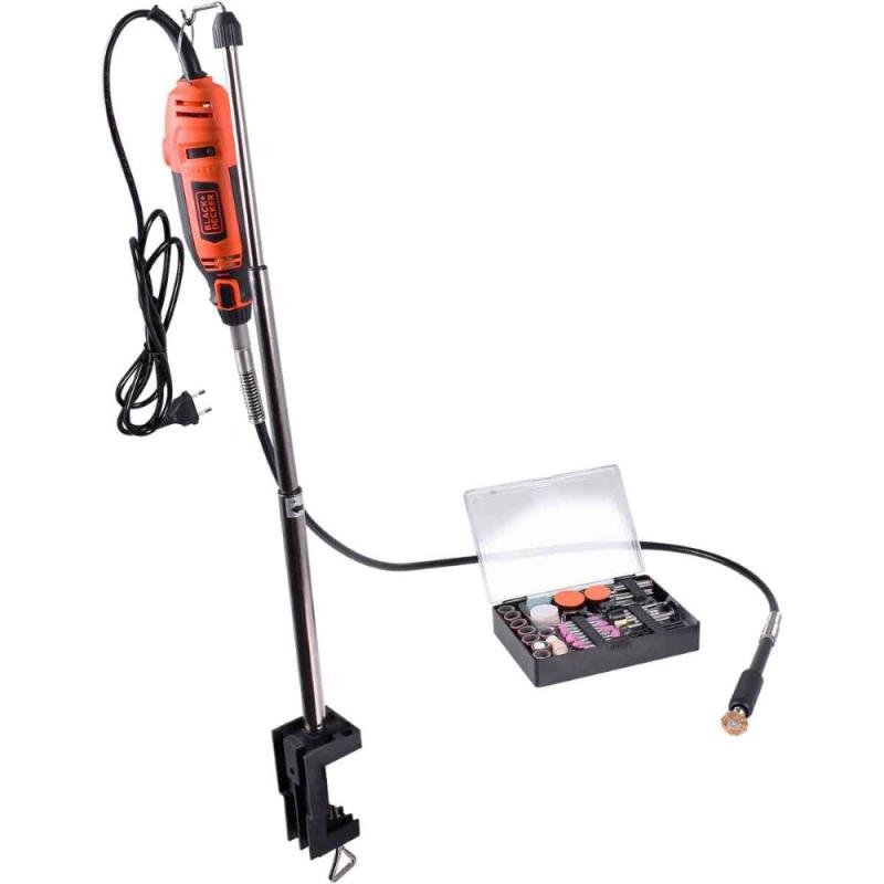 Micro Retífica com Controle de Torque + 113 Acessórios RT18KA-B2 BLACK & DECKERDescrição:A Micro Retífica RT18KA da Black&Decker possui a potência de 180W e é ideal para a realização de trabalhos de corte, perfuração, modelagem, gravação entre outros em madeira, plástico, metal e muitos outros materiais.A ferramenta possui empunhadura emborrachada, com controle de velocidade, eixo e haste flexíveis e uma haste para pendurar, tudo pensado em gerar conforto, segurança e praticidade ao operador.Alta qualidade, máquina compacta que é apropriado para um enorme número de aplicações diferentes para furar, corte, afiação e escovar graças a sua ampla gama de acessórios.Características:Gancho para PendurarEixo e haste flexívelControle de velocidadeSuporte para pendurar a ferramentaEspecificações Técnicas:Potência: 180WVelocidade: 35.000 rpmTensão: 110V ou 220V (Não é BIVOLT)Composição do Produto: PoliamidaTipo de Motor: Universal (Corrente alternada)Dimensões (AxLxC): 6,5x5,5x20 CMPeso: 0,690 GRAcompanha 113 acessórios sendo:MaletaSuporteEixo Flexível23 Discos de Corte (15/16"),31 folhas de Lixa (3/4"),1 Tubo de lixa 1/2" com 1/8" haste,18 Banda de Lixa ½",3 Discos de Polimento 1",3 Discos de Polimento 1,2",3 Discos de Polimento 3/8",10 Vários Esmeril,2 Escova de Aço 1/4" Axial,1 Escova de Aço 3/4" Radial,1 Escova de Aço 1/2” Axial,1 Diamante 5/64" Cone,1 Diamante 5/64" Bola,1 Diamante 5/64" Cilindro,3 Bit Multiúso 1/8" Cilindro,1 Mandril P/ Disco de Corte/Folha de Lixa 1/8",1 Mandril P/ Disco de Corte/Folha de Lixa 3/32",1 Mandril P/ Disco Esquerdo 1/8",1 Pedra de Óxido,1 Pinça 1/8" (instalado na ferramenta),1 Pinça 3/32",1 Pinça 1/16",1 Chave.Marca: BLACK & DECKERReferência: RT18KA-B2 (110V)/ RT18KA-BR (220V)Garantia: 12 Meses*Imagens meramente ilustrativas.