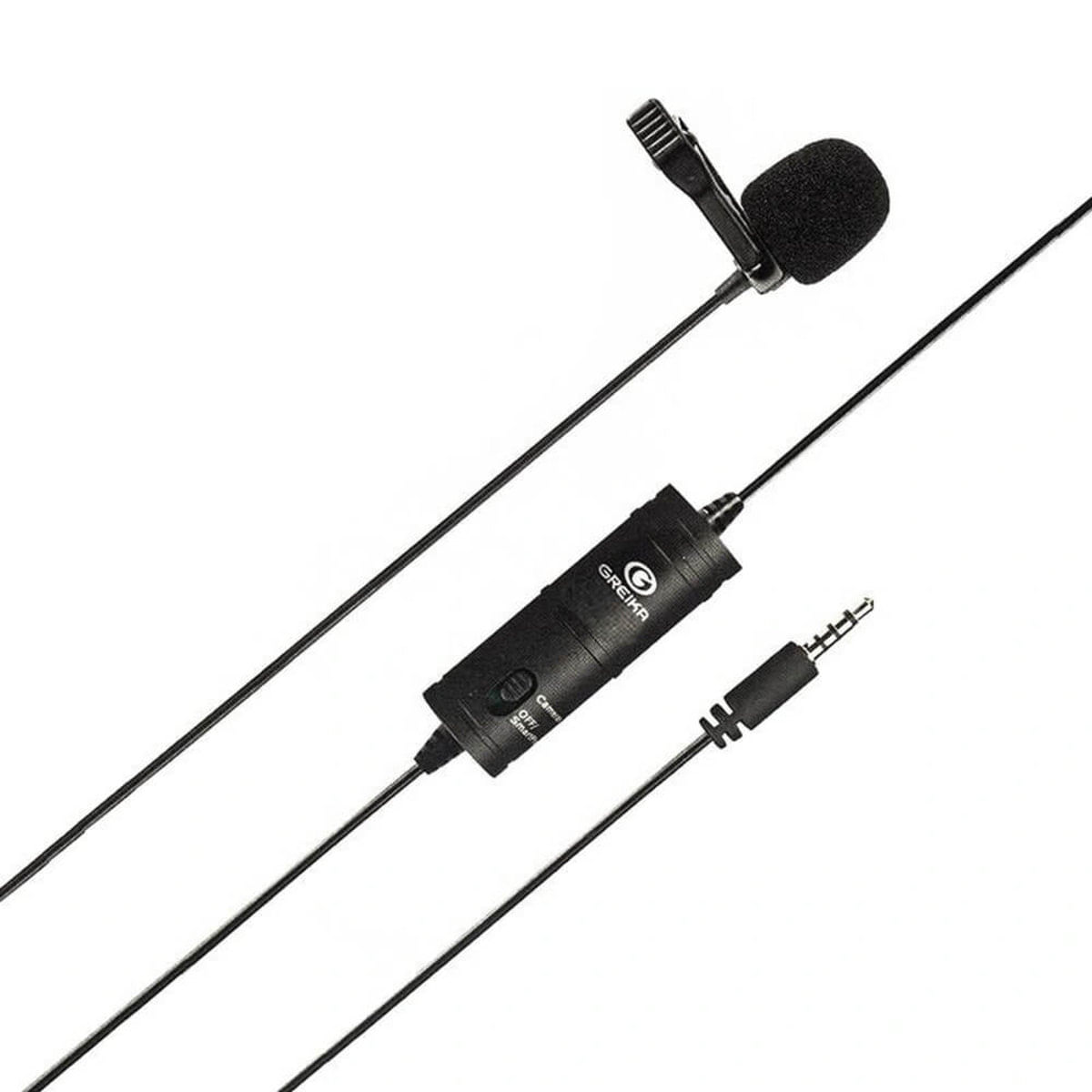 Descrição: Microfone de lapela para smartphones (celulares), câmeras, gravadores, filmadores e PC. O microfone lavalier possui um padrão de captação Omni, para cobertura completa de 360° graus. Um cabo integrado de 6 metros com plug de ouro de 4 pólos de 3,5 mm, pode se conectar em seu equipamento. Informações Técnicas: Marca: Greika Modelo: GK-LM1 Tipo de Microfone: Condensador Padrão Polar: Omni-Direcional Frequência: 50Hz a 18KHz Sensibilidade: -30dB +/- 3dB / 0dB = 1V / Pa, 1kHz Sinal: >75 dB SPL Alimentação: 1x Bateria LR44 Cabo: 6 metros Saida: 3.5mm Peso: 20 gramas Itens Inclusos: 1x Microfone de Lapela com Espuma 1x Adaptador para 6.5mm 1x Bolsinha Garantia 6 meses