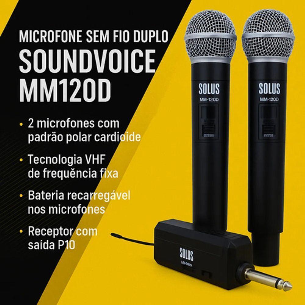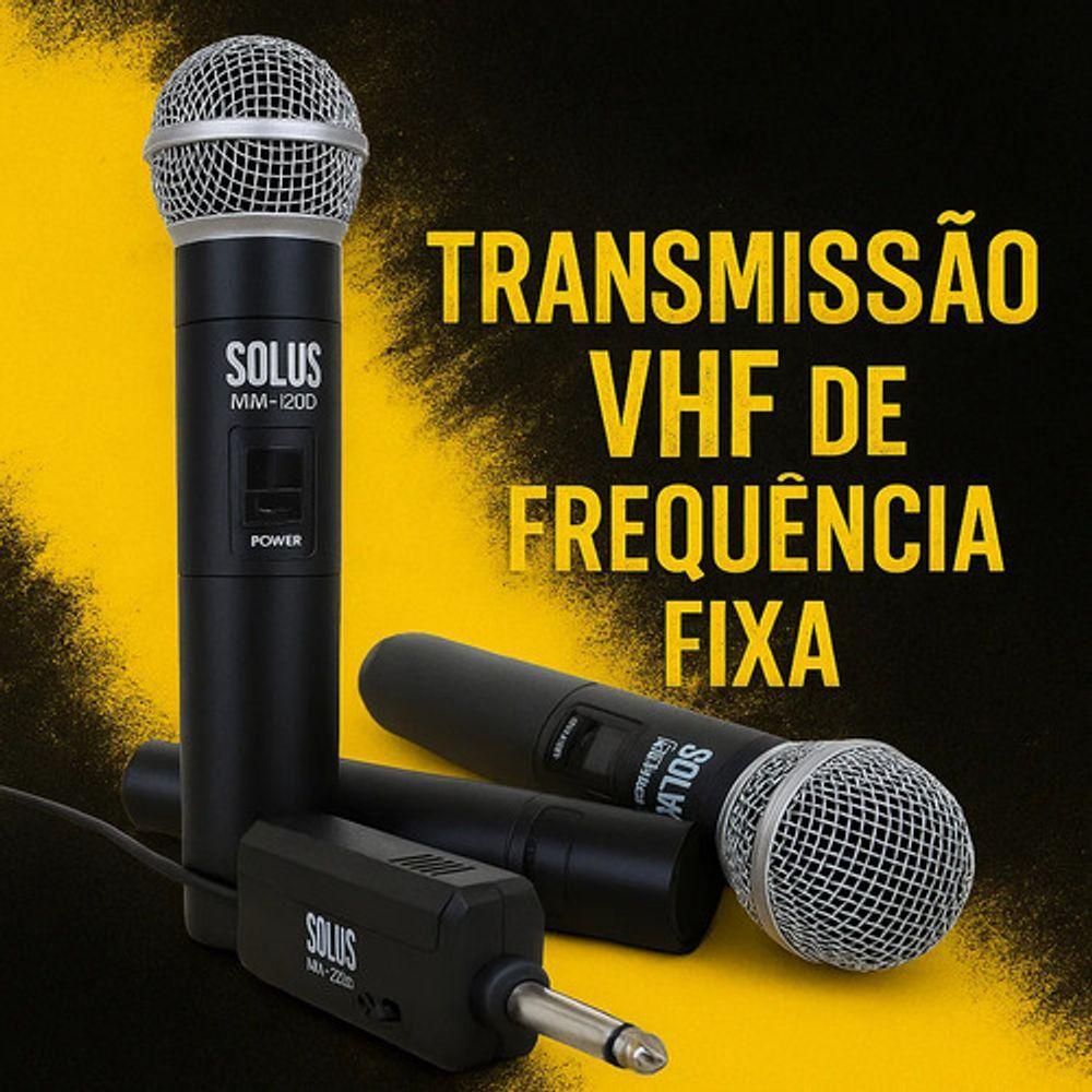 O Microfone Duplo VHF MM-120D, com sua bateria de lítio e frequência fixa garantem praticidade e qualidade de áudio.