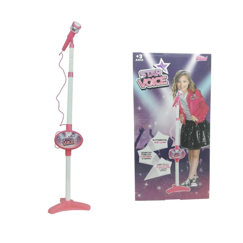 Atenção: imagens meramente ilustrativas...Contém:..01 un - microfone star voice rosa. Zoop toys. Ref: zp00220...Um lindo e divertido brinquedo chegou para alegrar seu dia microfone de brinquedo star voice veio para descobrir novos mini-talentos é super legal e divertido na importante função de desenvolver a sensibilidade musical das crianças, o microfone infantil estimulará as crianças a soltarem a voz e usarem a criatividade musical. Confira e adquira o seu..Características:..Microfone star voice: de cor rosa. Conecte seu celular ou mp3 player e cante junto. Parte ajustável, extensível até 1,09m. Sons do público curtindo o show. Luzes piscam enquanto você canta...Segurança do brinquedo certificado pelo inmetro..Ce-bri/innac - 01761-001a nm 300/2002...Medidas aproximadas (centímetro):..Altura mínima: 77 cm..Altura máxima: 1,09 m..Largura: 5 cm..Comprimento: 17 cm...Medidas aproximadas da embalagem (centímetro):..Altura: 38 cm..Largura: 20 cm..Comprimento: 7 cm...Atenção:..Não recomendado para menores de 03 (três) anos. Idade mínima recomendada:3 anos Cor:Rosa Funções:Luz Idade máxima recomendada:0 Fonte do produto:Zoop Toys Alimentação:AA Inclui pedestal para microfone:Sim É sem fio:Não marca:Zoop Toys