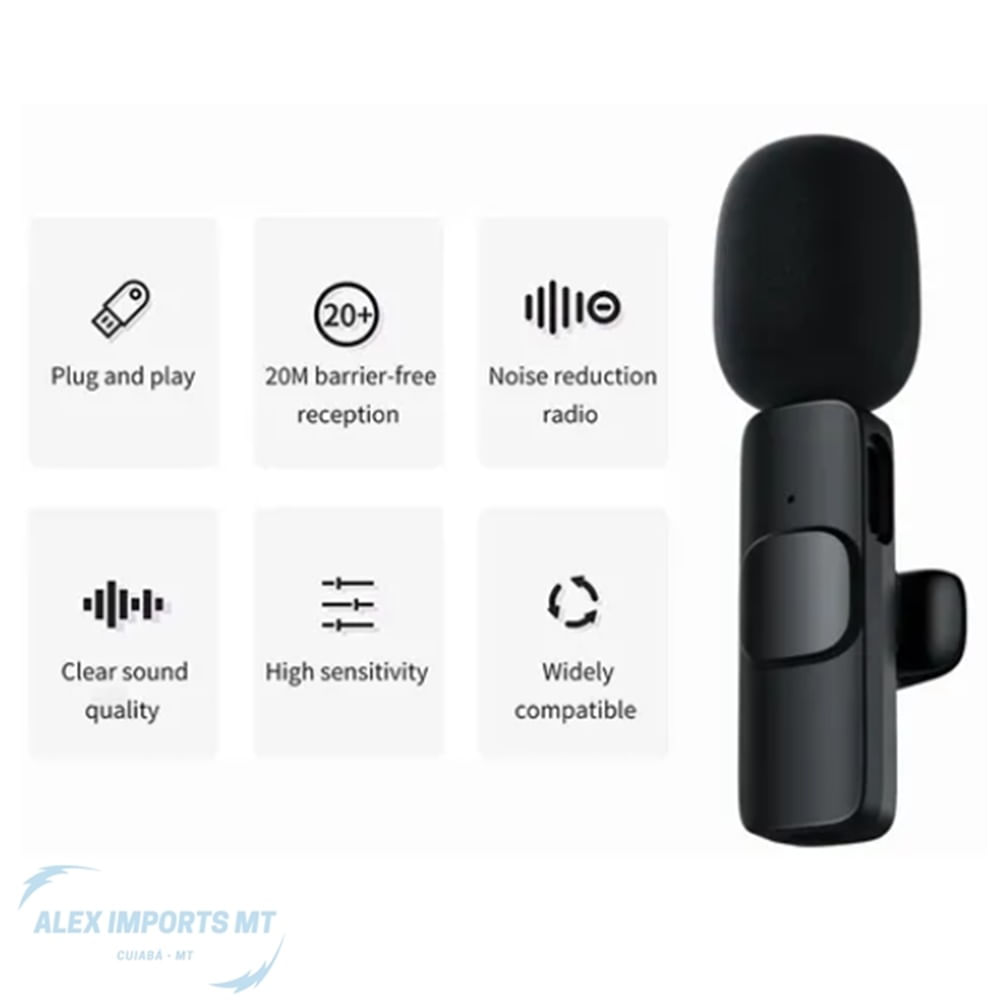 Microfone Lapela Duplo Sem Fio 2,4ghz Recarregável Lightning - Alta Qualidade - Omni-direcional - Voz Clara E Ótima Captação - Captação 360 Graus - Longo Alcance 20-30 Metros - Plug-and-play - Bateria Com Até 5h De Duração Características: 1. Mão-livre, Pode Ser Usado Para Conversar, Reunião De Vídeo, Gravação De Música, Tiktok, Youtube, Lives, Streamings, Etc. 2. Um Grampo Giratório De 360 Graus Para Você Grampeá-lo Ao Colar, Ao Laço Ou Ao Bolso Facilmente Especificação: - Freqüência: 2.4ghz - Tensão De Entrada: Dc4.8 - 5.4v - Conexão: Lightning - Capacidade Bateria: 80mah (cada) - Distância De Transmissão: 30-50metros - Tamanho Do Microfone: 62*23*28mm - Tamanho Do Receptor: 45*27*7mm - Faixa De Frequência: 20hz-20khz - Sensibilidade:-30db 11db - Snr: >,60db - Impedância: <,= 2.2k Ohm Instruções De Uso: 1. Conecte O Receptor No Seu Aparelho 2. Pressione O Botão Do Lapela Por 2 Segundos 3. Luz Começará A Piscar Alternando Vermelho E Verde 4. A Luz Ficará Estática Apenas Verde 5. Pronto! Microfone Conectado! Shp Mt Cba Mlv