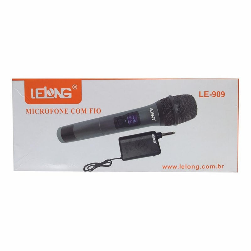 Microfone Profissional Sem Fio, Wireless - Lelong Original LE-909 . Surpreenda-se com o Microfone Sem Fio Lelong Le-909 Profissional. Apropriado para palestras, convenções, shows, ensaios.. Ótimo alcance sem obstáculos, tudo isso para você se movimentar livremente, sem qualquer preocupação.. Tenha total mobilidade aliada um microfone de alta qualidade e design Elegante.. . Especificações:. Alcanço da Frequência: VHF. Resposta de Frequência: 100 Hz a 15 KHz. Sensibilidade de Recepção: -74 dB 3dB. Impedância: 600 O. Alcance: de 15 a 30m. Alimentação: 2 pilhas AA. Opções de uso: Sem fio. Frequência 255.6 MHz. Conexão: Conector P10. Cor: Preto. . Conteúdo Da Embalagem:. 1 Microfone. 1 Antena sem fio