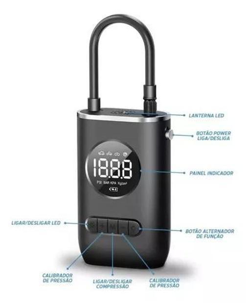Mini Compressor De Ar Potente Para Carros E Vans - Compacto E Confiável Para Qualquer Jornada Compressor Portátil Com Bateria Interna De 2000mah Recarregável, Com Visor Digital De Pressão. 1 - Sem Fio, Não Necessita De Conexão Ao Acendedor De Cigarros. 2 - Compacto - Cerca De Altura 13,7 Cm X Largura 8,9 Cm, (o Tamanho É Equivalente A Um Smartphone Com Tela De 4,7, Podendo Caber Facilmente No Porta Luvas, Na Moto Ou Em Sua Mochila. 3 - Leve - Peso De Cerca De 395 Gramas. 4 - Possui Uma Pequena Lanterna Para Operação Em Locais De Baixa Iluminação. 5 - Interface De Carregamento Via Cabo Usb - Type C , Mais Rápido Que Os Tradicionais (incluso No Kit). 6 - Acompanha Bico Para Pneu Com Rosca (sem Perigo De Soltar Como As De Alavanca), Bico De Pneu Rápido, Bico Para Bola, 2 Bicos Para Infláveis E Cabo De Carregamento. obs: Pausar Por 5 Minutos Depois De Usar Por 10 Minutos. Caso Contrário, A Temperatura Crescente Do Escudo De Metal Danificará O Motor. especificação: material: Abs 10a tensão: 7,4v potência: 50w fluxo De Pressão De Ar: 25l / Min tipo De Fonte De Alimentação: Type-c comprimento Do Cabo De Alimentação: 0,8 Metros comprimento Do Tubo Inflável: 0,5