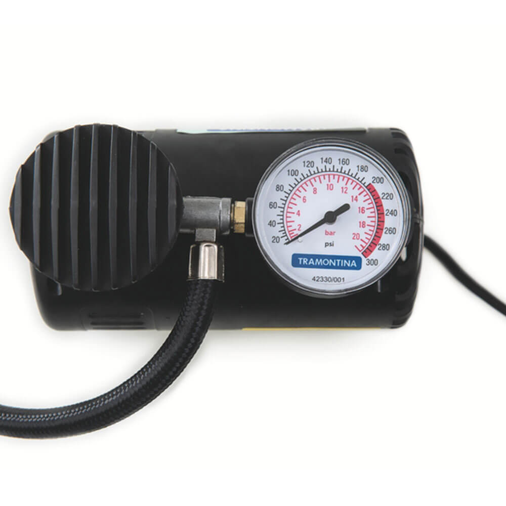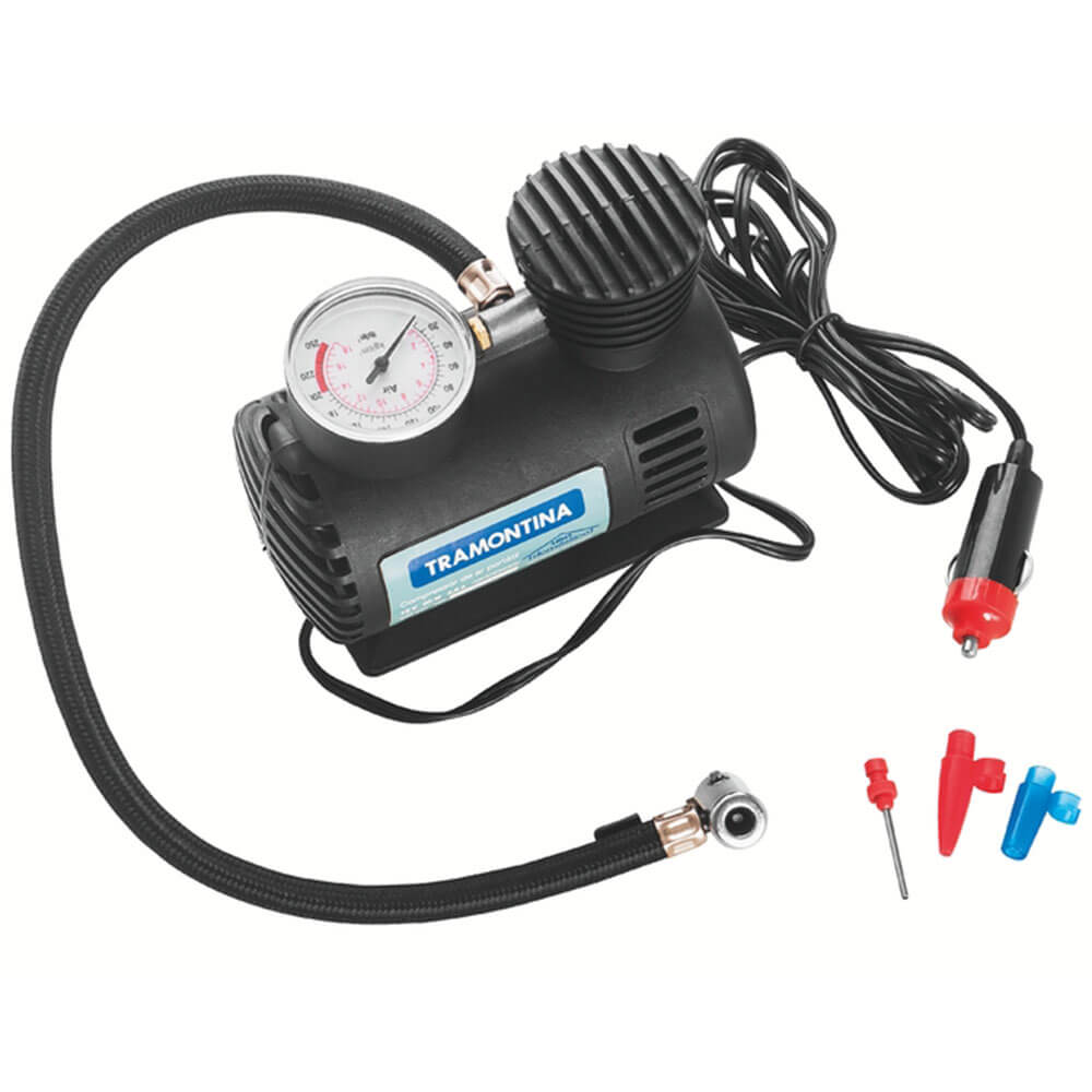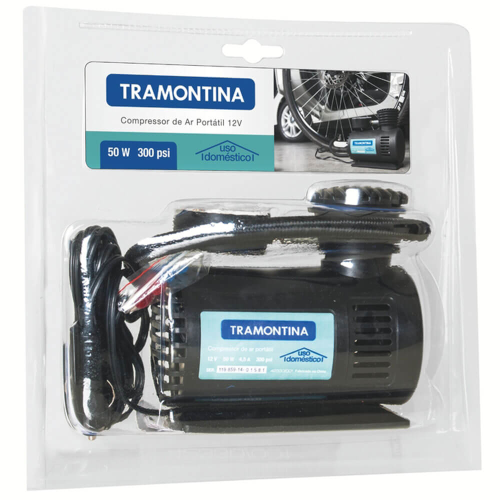 Compressor De Ar Portátil Tramontina Para Carros 300 Psi 50 W 12 V 42330001marca: Tramontinamodelo: Portátil Tramontina Para Carros 300 Psi 50 W 12 V 42330/001descrição- Se Você Prima Por Praticidade E Sempre Procura Itens Úteis Que Podem Resolver Várias Situações No Dia A Dia, Precisa Conhecer O Compressor De Ar Portátil Tramontina Para Carros 300 Psi 50 W 12 V. - Ideal Para Trabalhos Domésticos De Inflar Boias, Bolas E Pneus De Bicicleta, Possui Manômetro Com Duas Escalas De Pressão Para Facilitar O Entendimento Do Usuário, Um Cabo De Alimentação De 2,8 Metros De Comprimento E Ponteiras Adaptadoras Para Boias E Bolas Para Facilmente Adaptar O Produto As Mais Diversas Aplicações. - Leve E Portátil, Pode Ser Facilmente Transportado E Vai Te Ajudar Em Diversos Momentos. É O Item Perfeito!informações Gerais- Potência: 50 W.- Tensão: 12 V.- Corpo Injetado.- Pressão Máxima: 300 Psi.- Vazão: 8 L/min.- Mangueira De 45 Cm Com Válvula Especial.- Acompanha: Ponteira Adaptadora Para Inflar Bolas, 2 Ponteiras Adaptadoras Para Inflar Boias, Manual De Instruções.- Leve E Portátil, Pode Ser Facilmente Transportado.- Ideal Para Trabalhos Domésticos De Inflar Boias, Bolas E Pneus De Bicicleta.- Para Encher Pneus De Carro A Roda Deve Estar Suspensa.- Possui Manômetro Com Duas Escalas De Pressão Para Facilitar O Entendimento Do Usuário.- Cabo De Alimentação De 2,8 Metros.- Possui Ponteiras Adaptadoras Para Boias E Bolas Para Facilmente Adaptar O Produto As Mais Diversas Aplicações.recomendações De Uso- Use Óculos, Luvas E Outros Equipamentos De Proteção Individual (epis) De Acordo Com A Tarefa A Ser Executada.- Mantenha Fora Do Alcance Das Crianças.- Recomenda-se Consultar O Manual De Instruções Para Mais Informações.- Armazene Em Local Limpo E Seco.- Respeite Sua Cidade E O Meio Ambiente, Para Descarte Dos Produtos E Embalagens, Siga As Orientações De Reciclagem Vigentes.- Nota: A Corrente Elétrica Do Produto Pode Chegar Até 10 A. Verifique A Capacidade Do Fusível Da Tomada 12 Volts Do Seu Automóvel Antes De Iniciar A Utilização. A Capacidade Do Fusível Deve Ser Igual Ou Superior A 10 A.peso- 0,62 Kggarantia- 1 Ano (90 Dias De Garantia Legal Acrescidos De 9 Meses De Garantia Contratual) Para Vícios Ou Defeitos De Fabricação.dimensões- Dimensões Do Produto (compr. X Larg. X Alt.): 240x 240x 80 Mm.