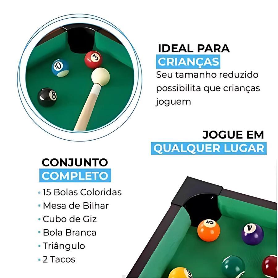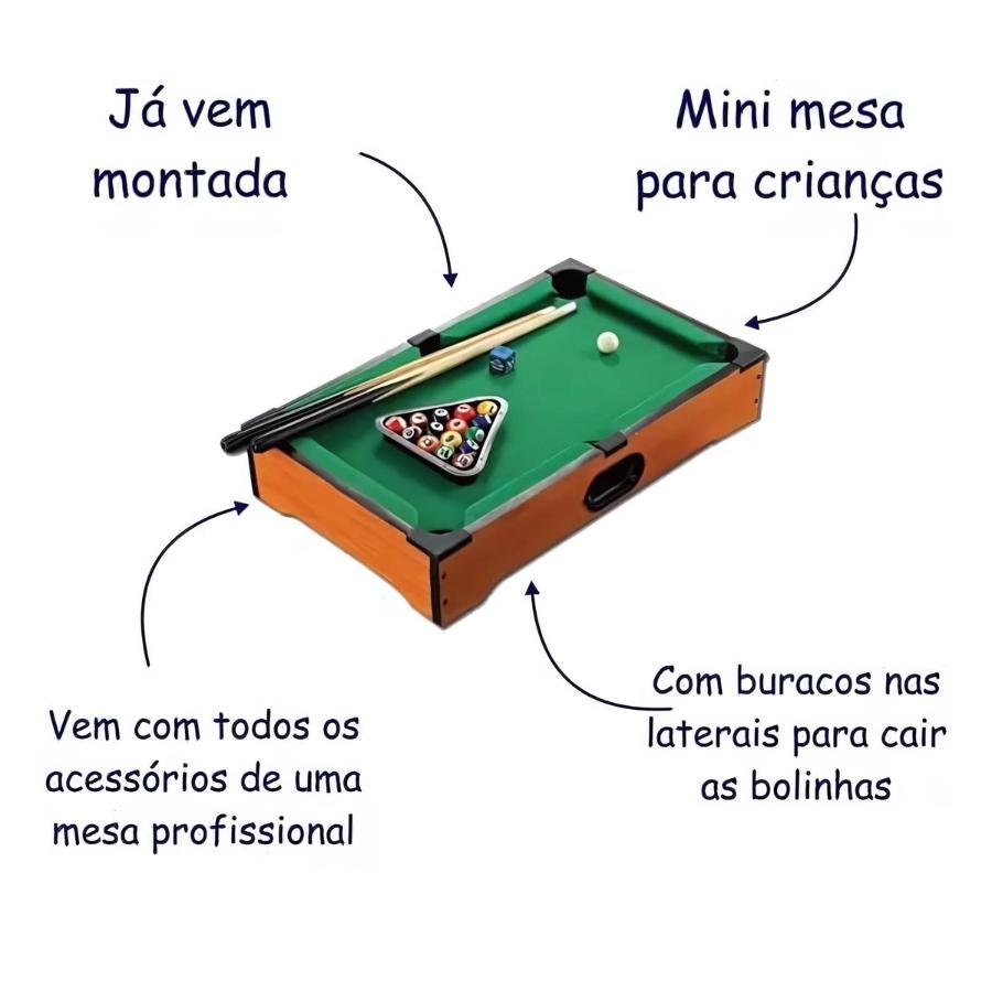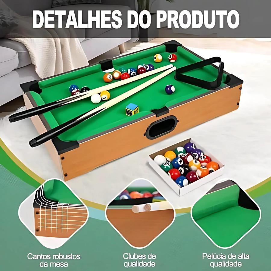 Mini Mesa De Bilhar Para Sala - Madeira Completa Com Tecido Verde