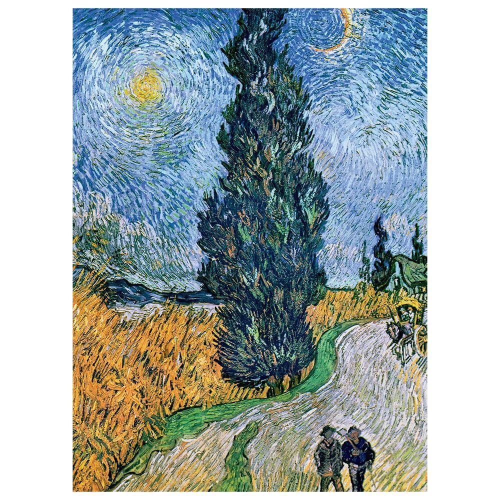 O Quebra-cabeça Com Minipeças Estrada Com Ciprestes E Estrela, Traz Uma Inspiradora Arte Do Artista Holandês Vincent Van Gogh. Esta Foi Sua Última Pintura Antes De Deixar O Asilo Saint-rémy De Provence (frança), Em Que Esteve Internado Em Maio De 1890 E É Uma Das Mais Populares. A Tela Traz Um Cipreste Muito Alto Que Se Estende Para Fora Da Pintura. Van Gogh Era Fascinado Por Ciprestes, Tanto Que Usou Como Tema Em Muitas De Suas Pinturas, Que Reforça Seu Amo Pela Natureza. O Artista Descreveu A Pintura, Entre Outras Palavras, Como Um Céu Noturno, Com Uma Estrela De Brilho Exagerado. Um Cipreste Alto, Reto E Muito Sombrio. Na Estrada, Uma Carroça Amarela Com Cavalo Branco Atrelado E Dois Viajantes. Muito Romântico, Mas Também Provençal. Título Da Obra: Estrada Com Ciprestes E Estrela Autor: Vincent Van Gogh - Ano: 1890 Tamanho Do Quebra-cabeça 30,0 X 22,0 Cm Quantidade De Peças 500 A Partir De 10 Anos