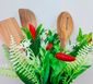 Vaso Regador De Alumínio Com Arranjo E Talheres De Madeira