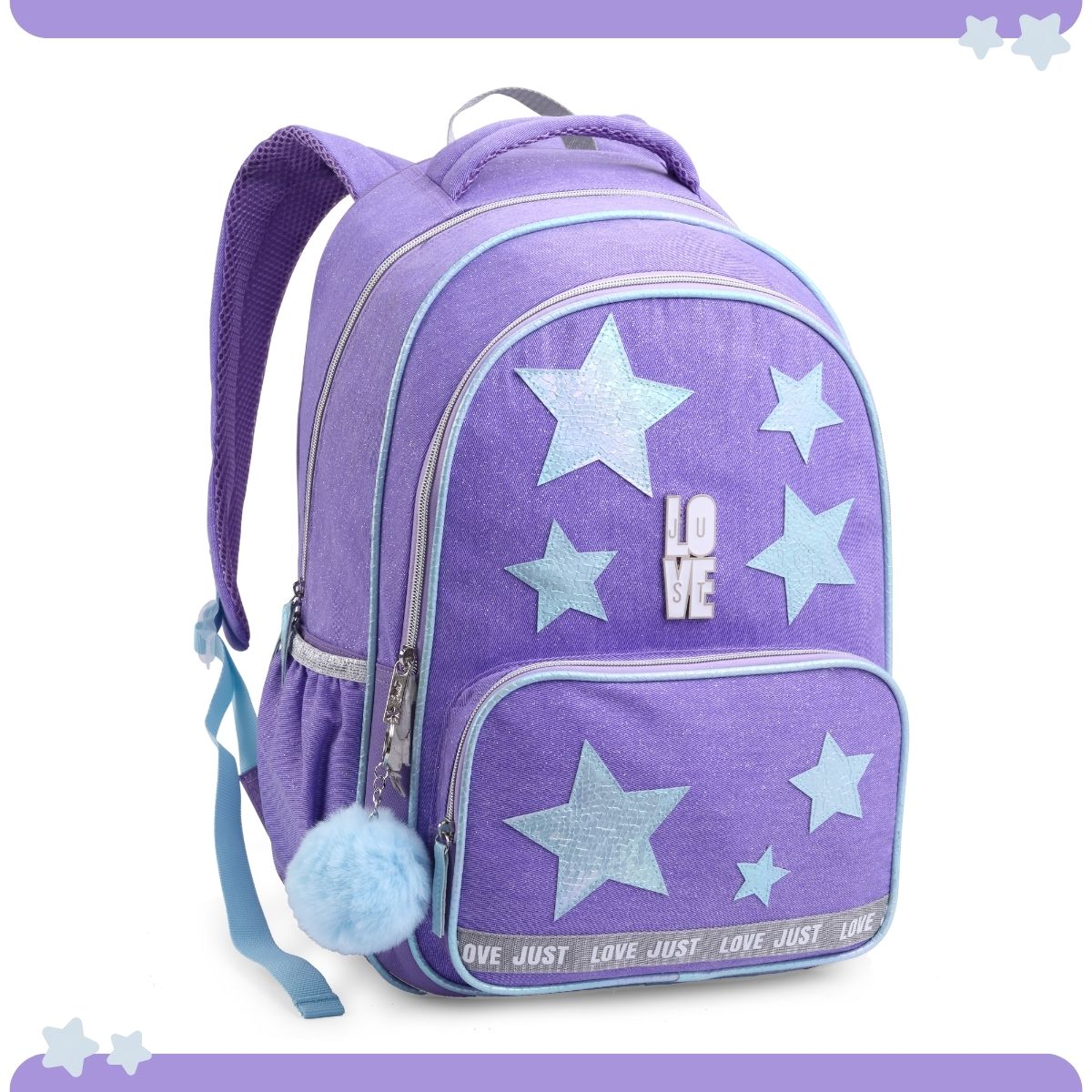 O Design E Um Show A Parte: Uma Estampa Estrelar Vibrante Com Estrelas De Tamanhos Variados E Tons Contrastantes Cria Um Visual Jovem E Moderno. O Detalhe "love" No Centro Adiciona Uma Mensagem Positiva E Um Charme Extra, Enquanto O Pompom Macio E Colorido Que Acompanha Cada Mochila Proporciona Um Toque Divertido E Personalizavel. Disponivel Em Quatro Cores Encantadoras – Azul Claro, Lilas, Rosa E Azul Escuro – Permite Que Cada Adolescente Escolha A Que Melhor Expressa Sua Individualidade.