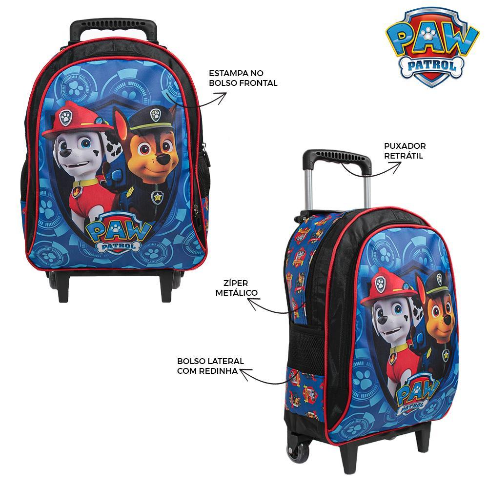 mochila, Escola, Escolar, Meninos, Infantil, Rodinha, Personagem, Desenho, Paw Patrol, Material, Cachorrinhos, Dog, Skye, Zuma, Chase, Marshall, Ryder, Rocky, Nickelodeon Kit.