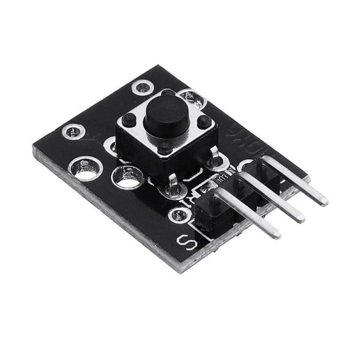 Módulo Chave Táctil KY-004..O Módulo Chave Táctil KY-004 é um módulo compacto baseado em uma chave táctil, a chave quando pressionada fecha contato entre seus terminais e permite a passagem de corrente, é utilizada nos mais diversos circuitos eletrônicos..O Módulo Chave Táctil KY-004 facilita a vida do amador ou projetista pois possui conectores do tipo barra de pinos que dispensa a necessidade de protoboards ou de adaptações desnecessárias..Adquirindo o Módulo Chave Táctil KY-004, você tem a certeza de estar adquirindo um produto de ótima qualidade por um ótimo custo x benefício...CARACTERÍSTICAS:.- Tensão Máxima: 12V DC.- Corrente Máxima: 50mA.- Temperatura de Operação: -25° a 105°C.- Dimensões: 6 x 7 x 6 mm..ACOMPANHA:.01 x Módulo Chave Táctil KY-004