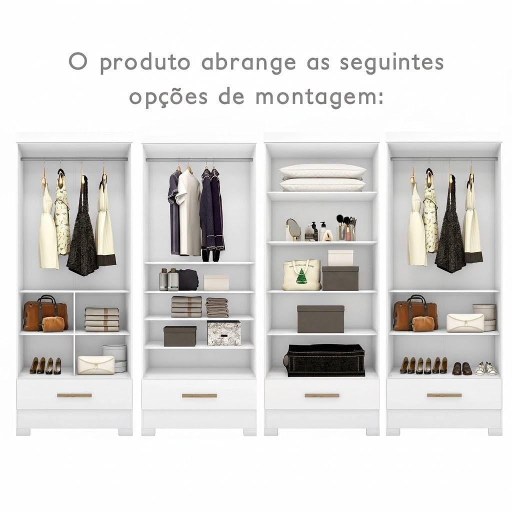 o Módulo Smart Plus, É Uma Solução Moderna E Funcional Para Otimizar Espaços. Suas Laterais, Divisões, Chapéus, Prateleiras E Gaveta São Feitas Em Mdp De 12mm De Alta Qualidade, Além De Rodapés De 15mm. O Fundo Do Roupeiro E Da Gaveta Tem 3mm De Espessura. Possui Corrediças Telescópicas Suaves, Interior Na Cor Do Produto, Puxador Da Gaveta Em Mdf E Cabideiro Em Alumínio. Oferece Quatro Possibilidades De Montagem Interna Elencadas Em Seu Manual De Montagem De Fácil Entendimento. Ideal Para Quem Busca Praticidade, Estilo E Organização Em Um Único Móvel.