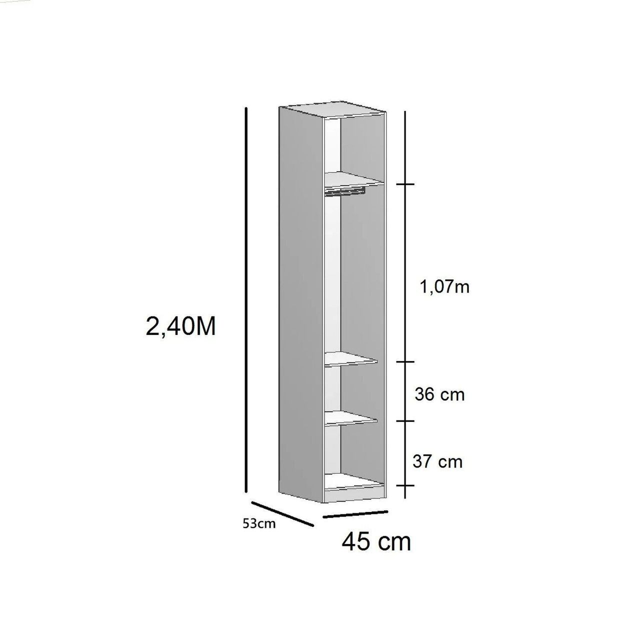 A Linha Modulada Altezza É A Opção Ideal Para Você Organizar O Seu Cômodo Da Forma Que Quiser, Otimizando Os Espaços Com Móveis Sofisticados, Resistentes E De Qualidade! O Closet Com Prateleiras/cabideiros 45cm Altezza É Totalmente Versátil E Adaptável As Suas Necessidades, Podendo Ser Montado Apenas Com Prateleiras, Com Prateleiras E 2 Cabideiros E Também Com 2 Prateleiras E 1 Cabideiro. Produzido 100% Em Mdf De 1,5cm (estrutura E Divisões Internas) E Pintura Texturizada Com 7 Camadas (que Confere Maior Resistência À Riscos E Batidas). Com Design Inspirado Nas Tendências Dos Móveis Planejados, Seu Grande Diferencial É A Altura De 2,40m (uma Das Maiores Do Mercado) E Sua Excelente Divisão Interna Para Melhor Organização E Disposição Dos Seus Pertences.