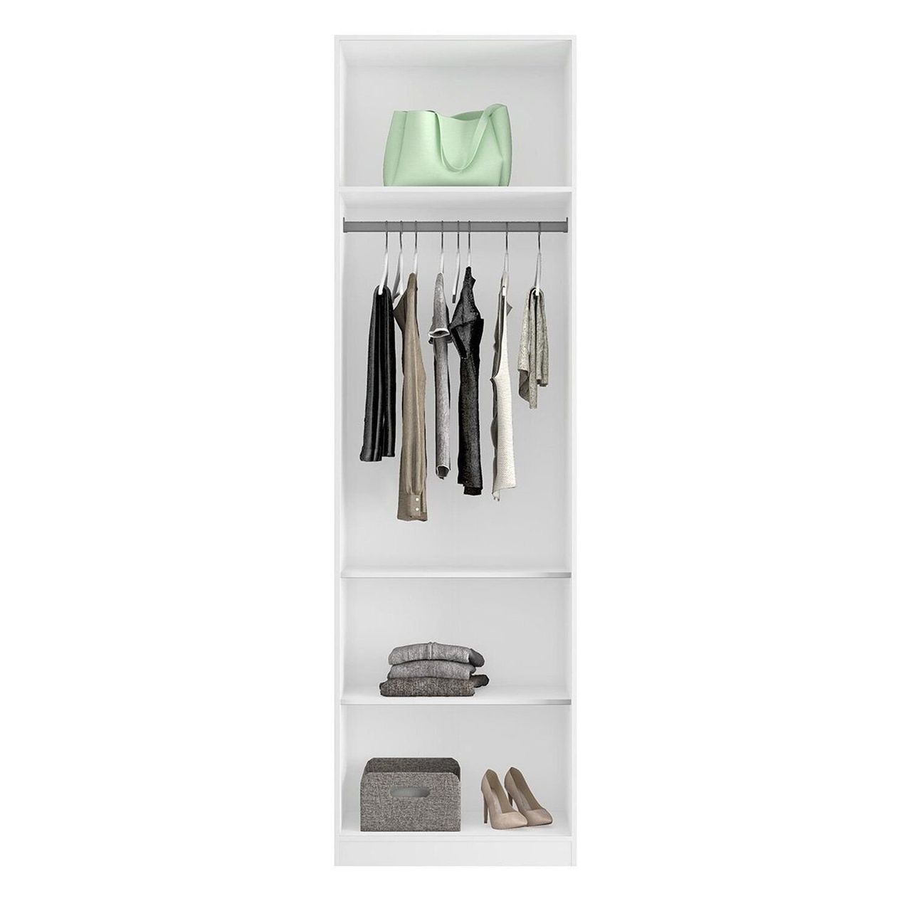 Módulo Closet Sem Portas Com Prateleiras E Cabideiros 90cm Altezza Branco.